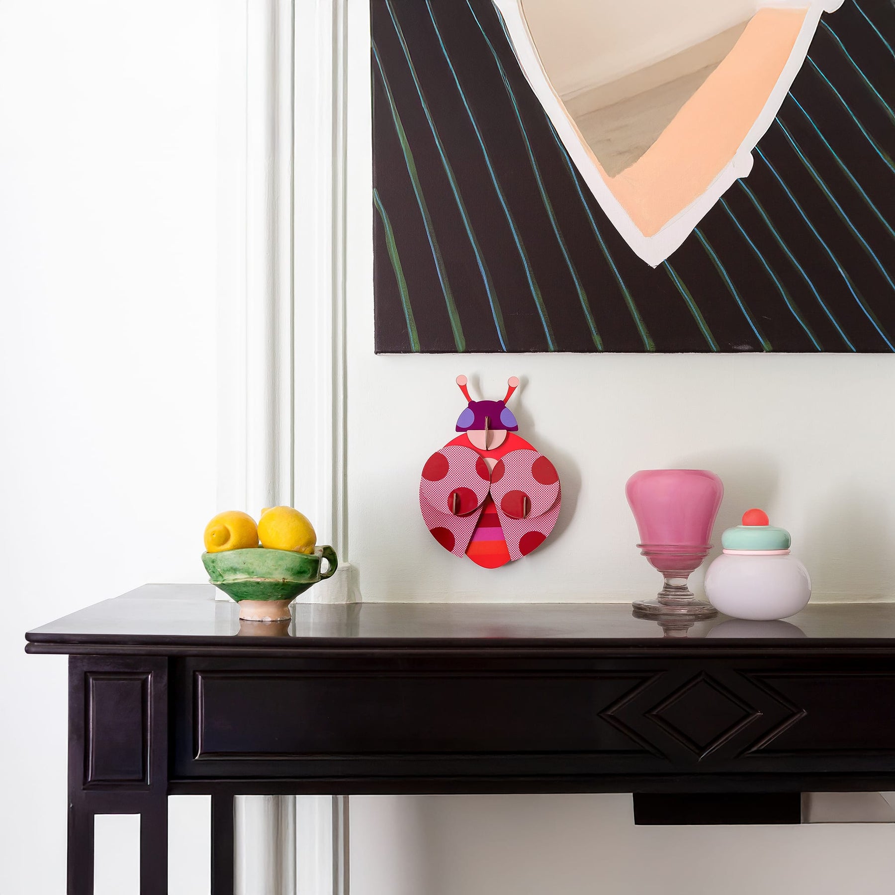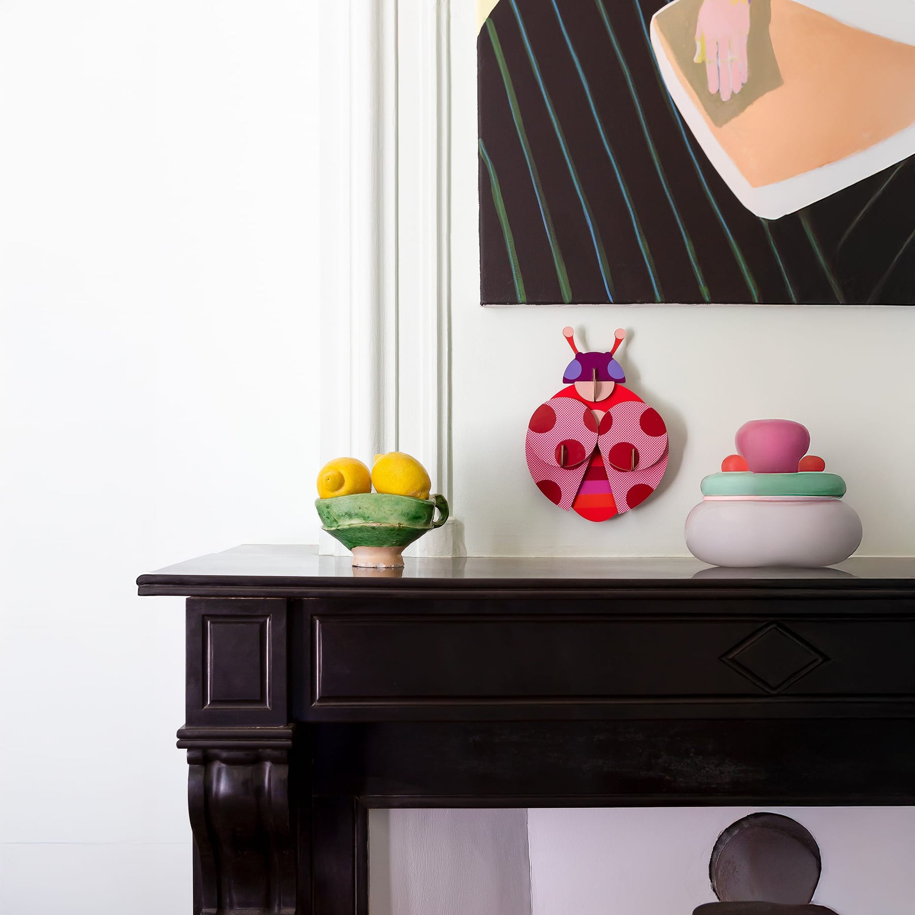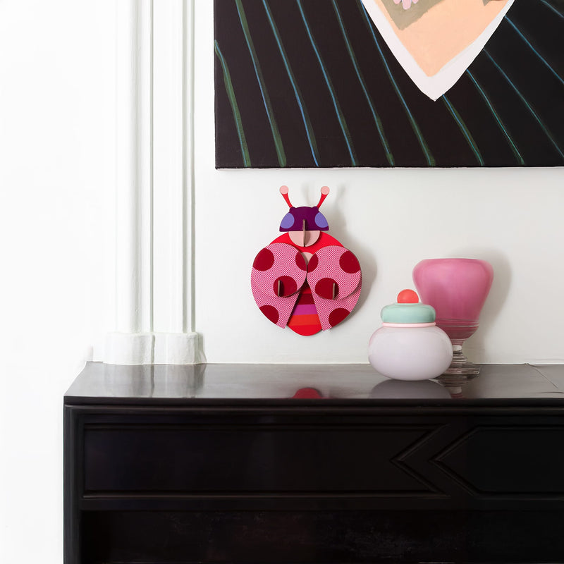 The Dotted Lady by Studio Roof is part of a special capsule collection designed with British artist Zoe Miller. Known for her graphic, playful style, Miller reinterprets Studio Roof’s iconic nature-inspired pieces with bold patterns and layered textile influences. The Dotted Lady stands out as a joyful, artistic decoration that brings charm and energy to any room.