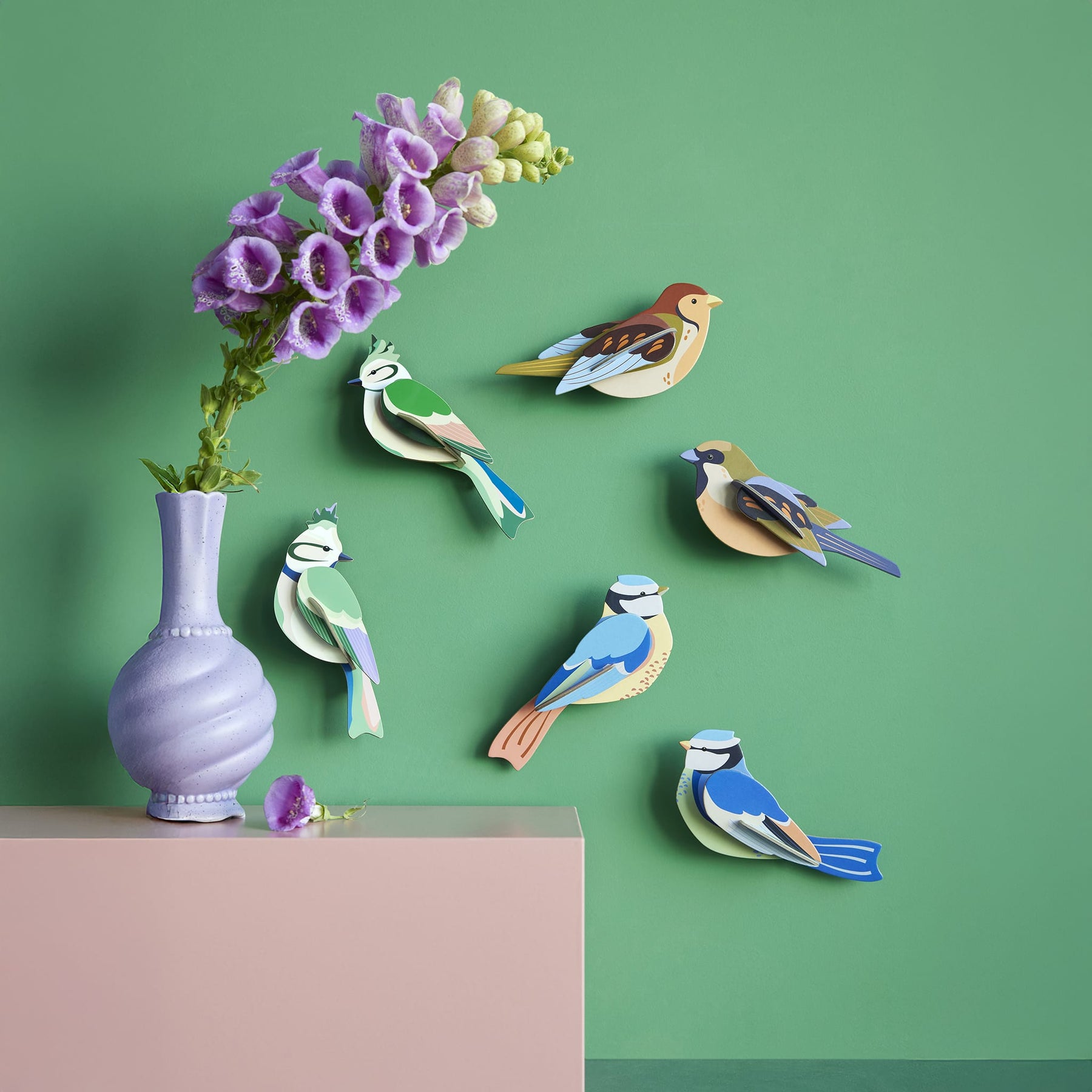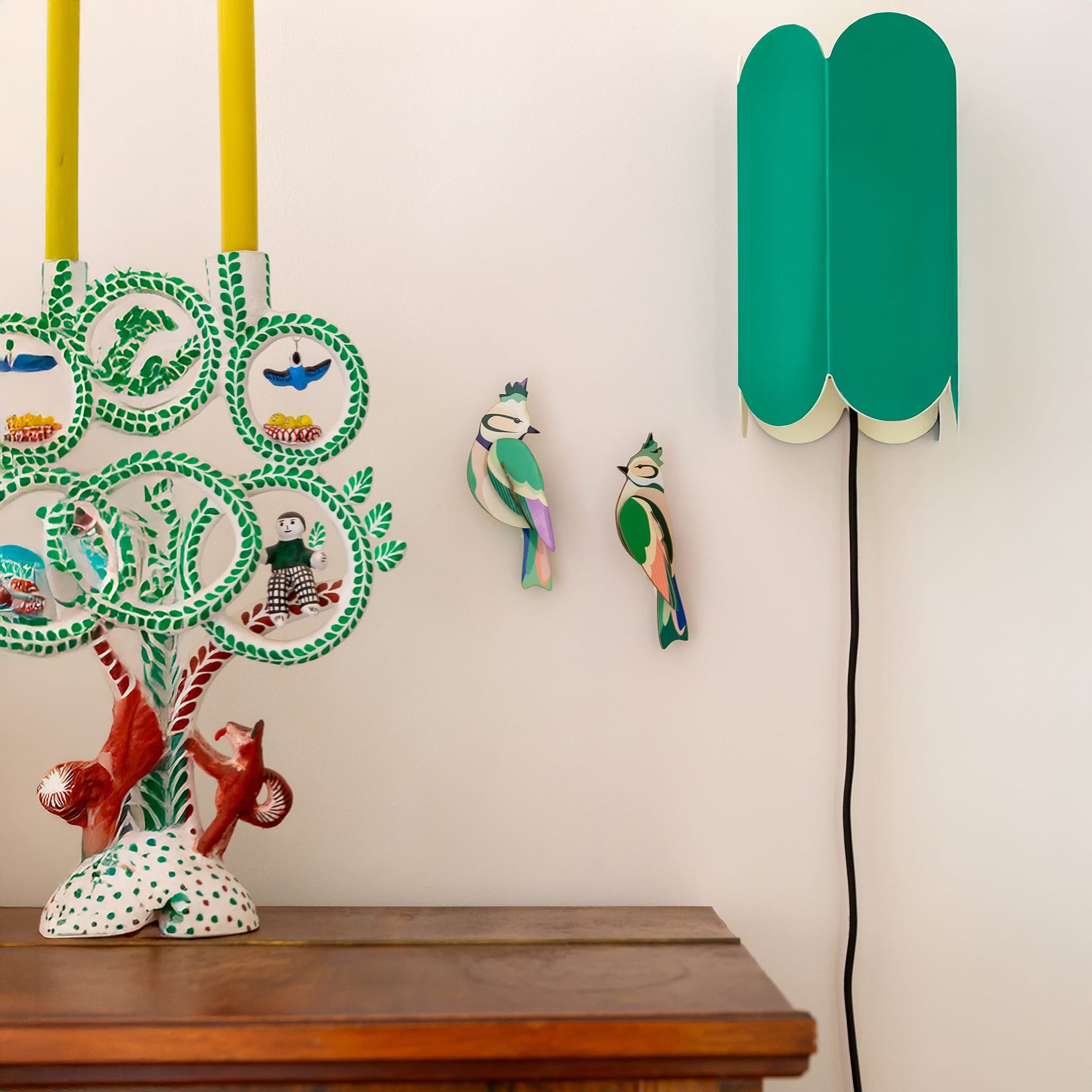 The Forest Crests by Studio Roof celebrate the charm of garden birds that brighten our days with their presence. These beautifully designed cardboard birds won’t flutter away; instead, they add a playful and colorful accent to your walls or shelves. Perfect for bringing a touch of the outdoors into your home, they capture the essence of woodland life in a creative, lasting way.