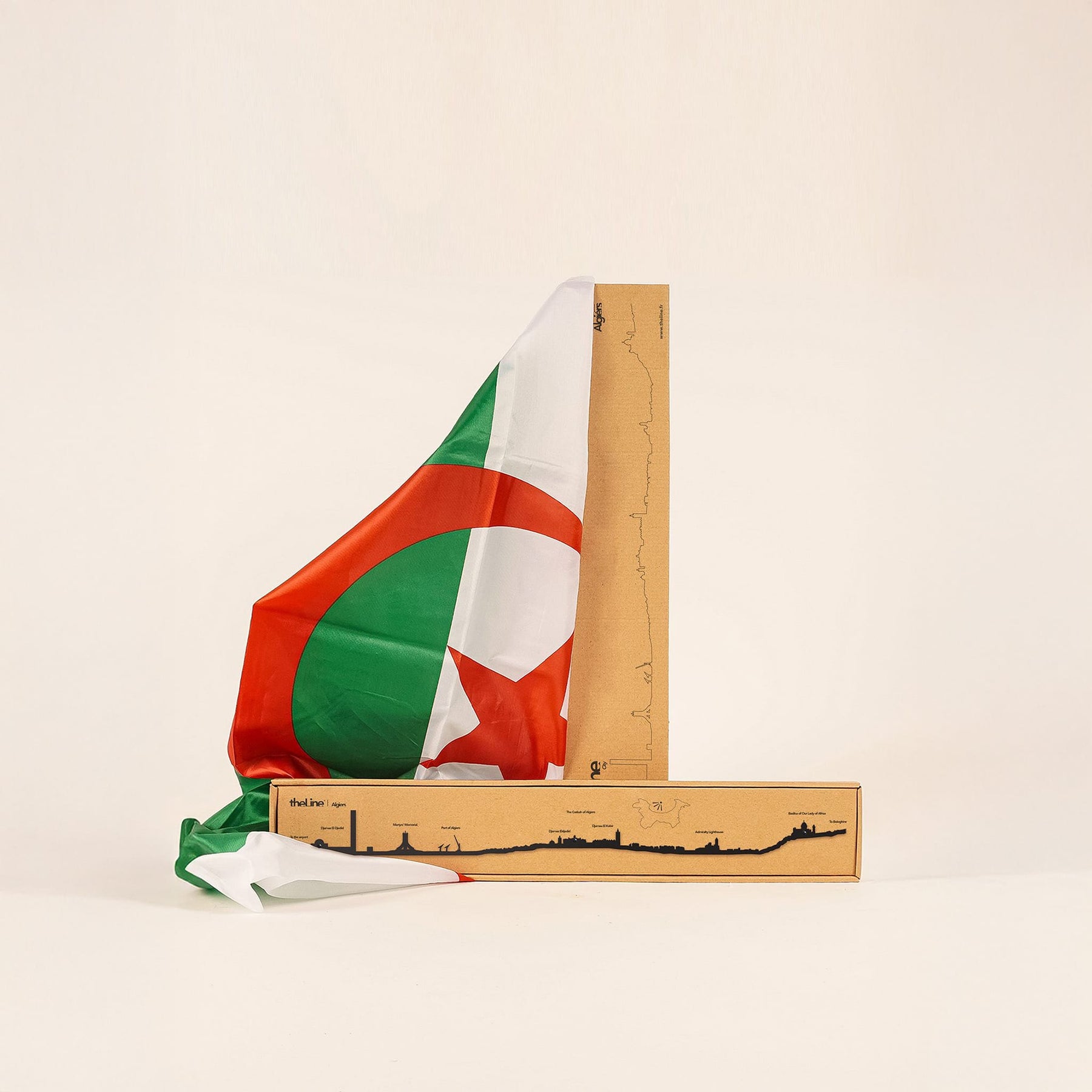 The Alger Line art piece captures the city’s striking silhouette as viewed from the sea. This steel artwork highlights some of Algiers’ most emblematic landmarks, including the Djamaâ el Djedid Mosque, the soaring Martyrs’ Memorial, the historic El Djamaâ el-Kebir Mosque, and the bustling port. Each detail reflects the city’s unique blend of heritage, culture, and Mediterranean charm.