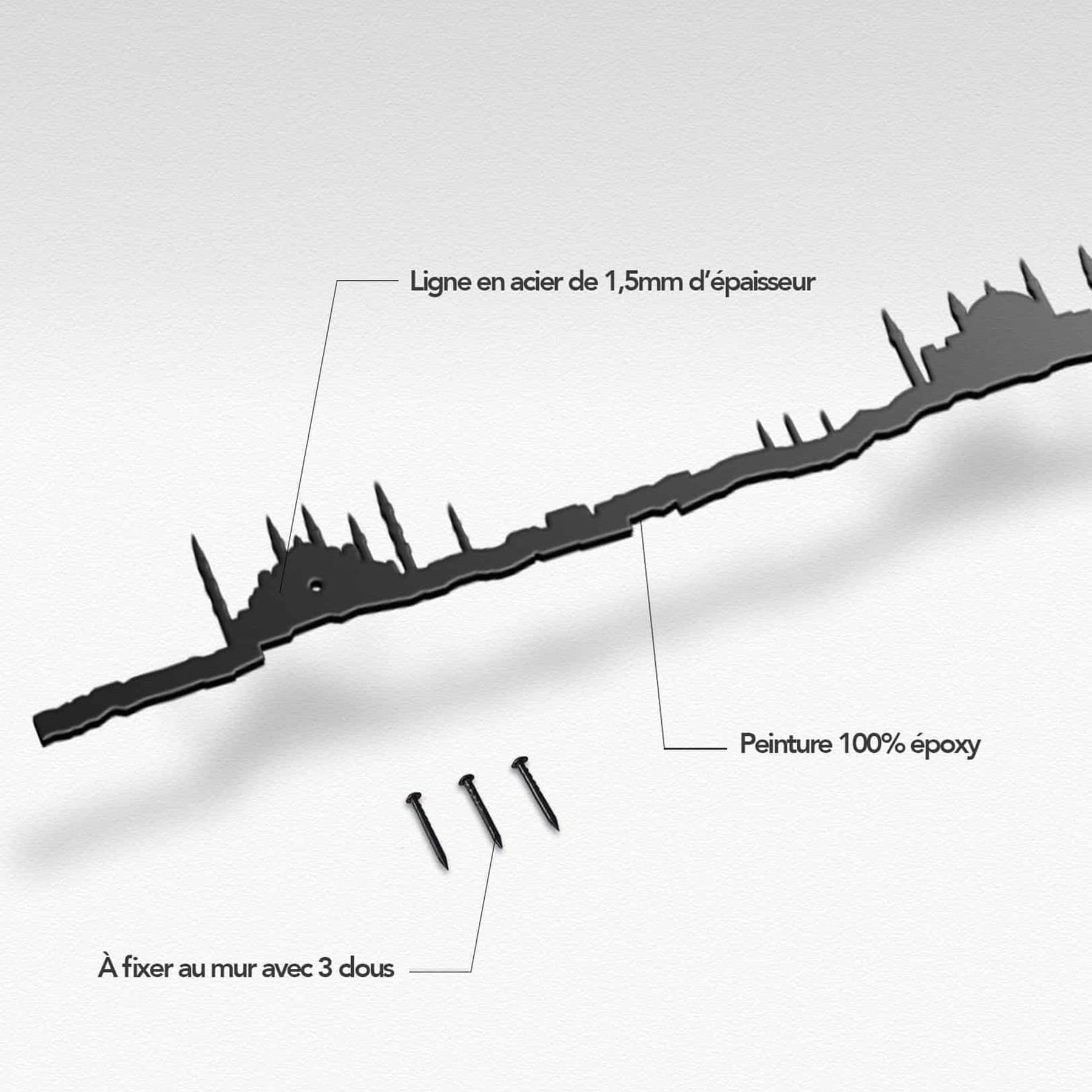 The Istanbul Line art piece captures the city’s timeless silhouette as seen from the Bosporus. This steel artwork highlights iconic landmarks such as the historic Galata Tower, the majestic Topkapı Palace, the striking Blue Mosque, and the legendary Hagia Sophia. Each detail reflects Istanbul’s unique character, where East meets West and tradition blends seamlessly with modern life.