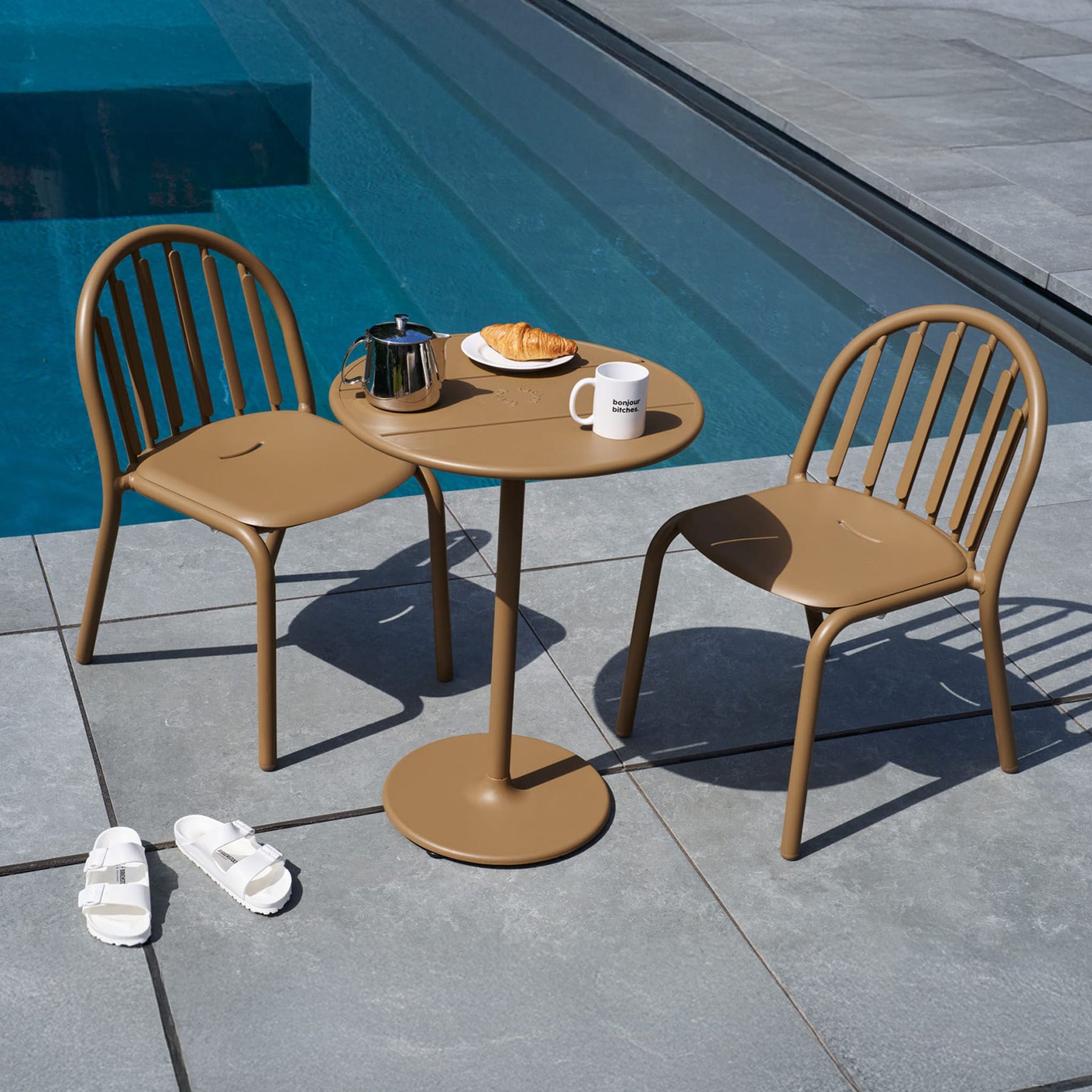 Fred’s Chair arranged around Fatboy Fred’s Bistreau table, ideal for intimate outdoor dining experiences.