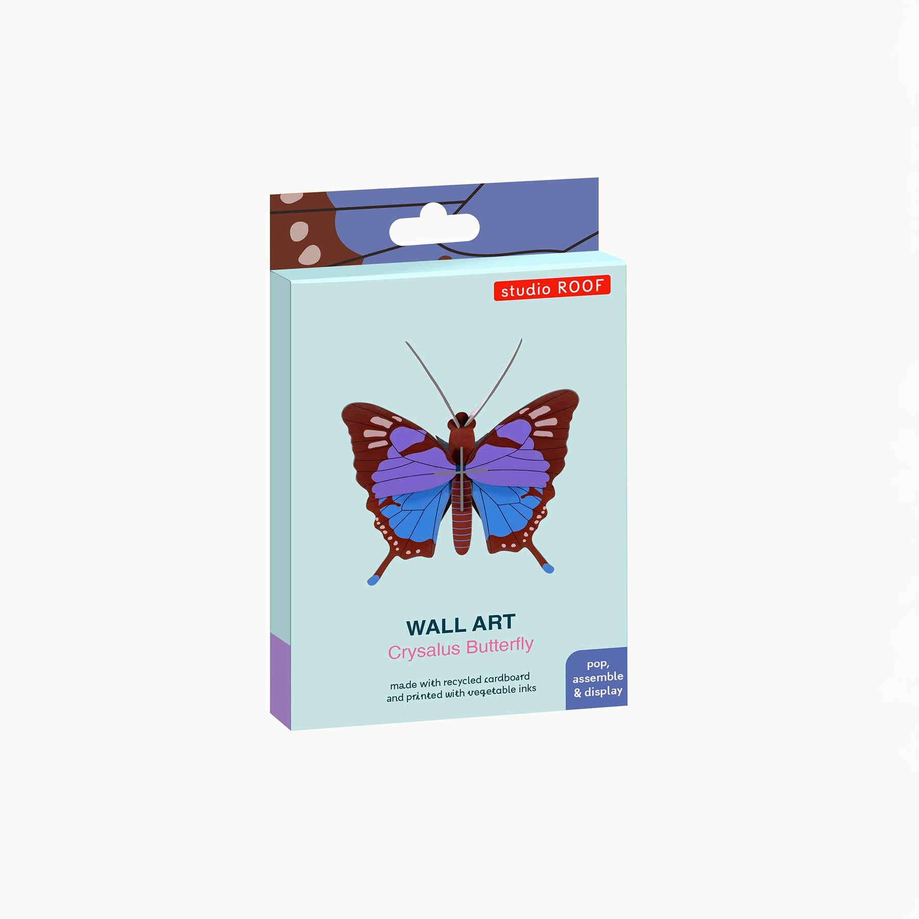 Crysalus Butterfly by Studio ROOF is a colourful 3D butterfly made from recycled cardboard, inspired by transformation and nature.